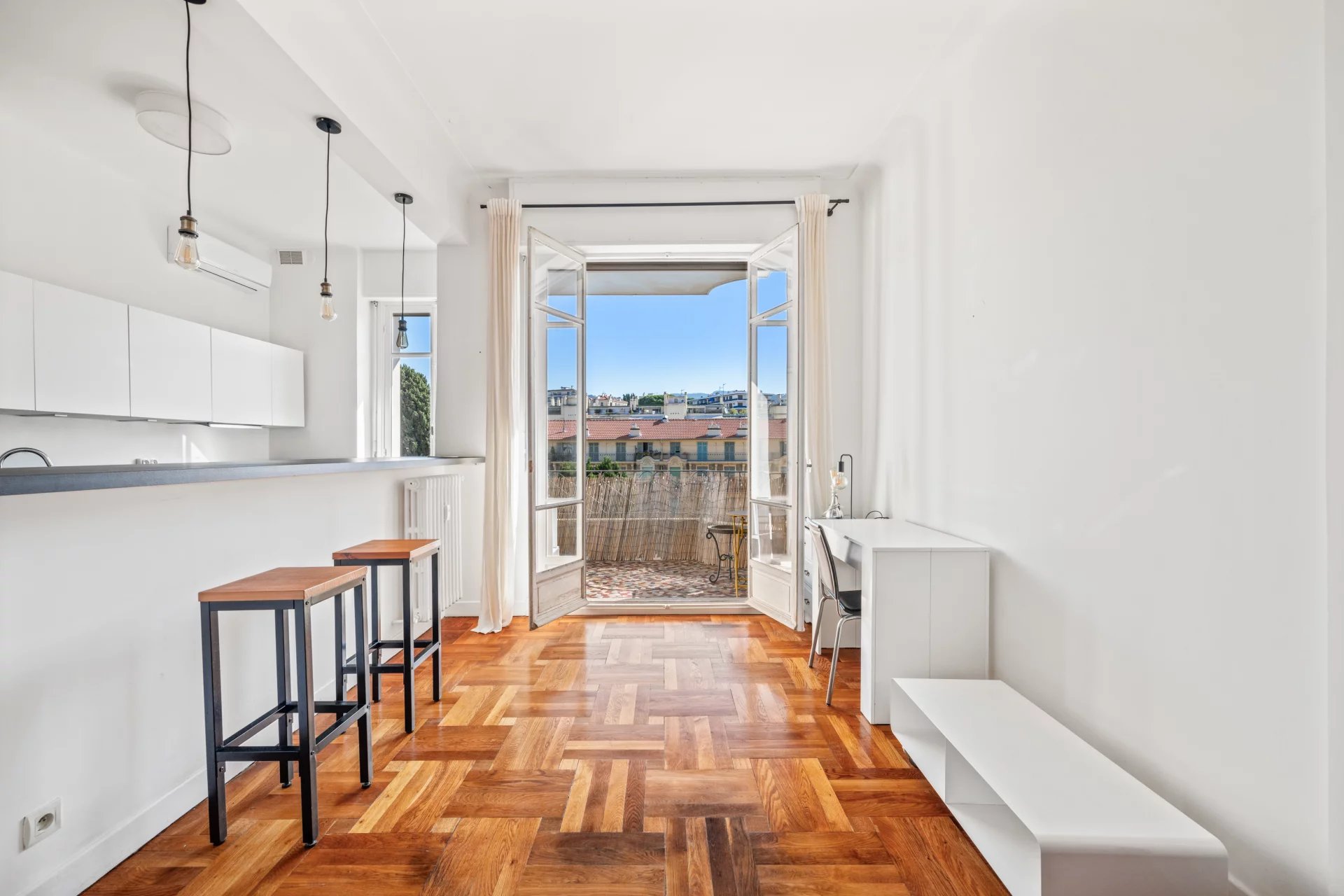 L’appartement se compose d’une entrée, un séjour lumineux avec cuisine américaine équipée donnant sur une terrasse exposé EST.